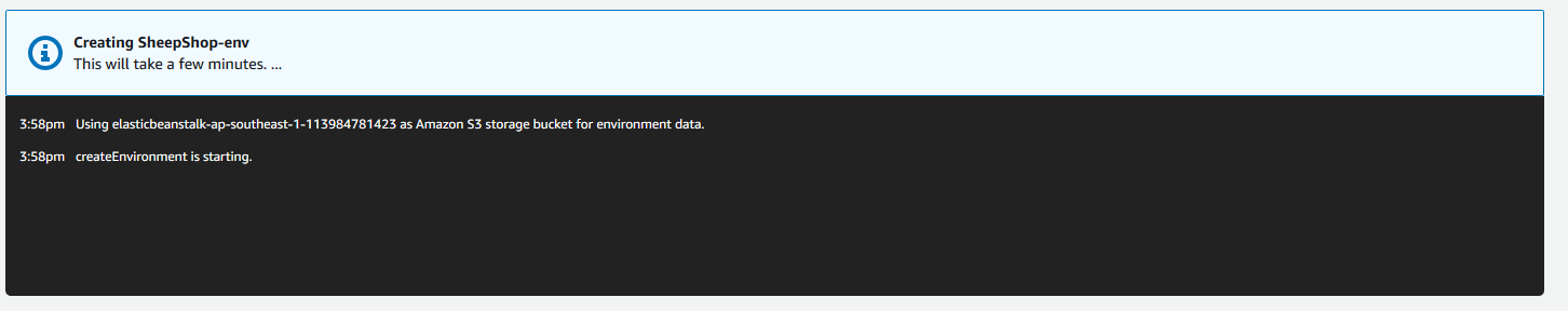 AWS Elastic Beanstalk is now deploying your application, give it a while for it to be ready. Meanwhile, go make yourself some coffee or something!