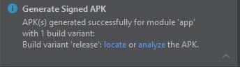 Your APK will finish building after some time, and it will show a message. Your APK has been created, either click on Locate, or go to the release folder in your app folder. You will find app-release.apk.