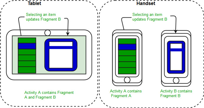 Fragments. Creating multiple activities is not the ideal way to go to creating a dynamic reusable UI. Fragments must live within an activity. Fragments are also part of the core of many Android Navigation Libraries which make designing navigation in your app much more stable.